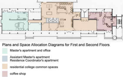 Extensive renovation was required to convert a 1970s-era, eight-story, concrete dormitory building into a residential college. For seismic reasons, the concrete structure of traverse-bearing walls could not be altered, requiring some degree of ingenuity to carve out substantial open spaces for common rooms. The design included a Faculty Master’s apartment -- a floor-through space that opens through from the street side to a large garden behind with bedrooms located on the second floor.
