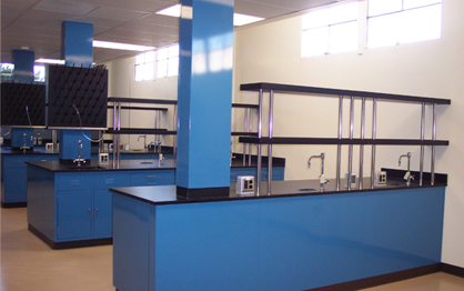 The substantially-complete project provides the agrochemical maker with a new formulation lab and an adjacent, H2-classified, single-pass environmental chamber for research in highly-explosive powdered compounds used in manufacturing fertilizer. Work includes more traditional analytic labs, plus new and renovated offices as well as a renovation to the exterior to address accessibility issues. Local zoning ordinances mandate the parking lot undergo a redesign to include extensive landscaping.